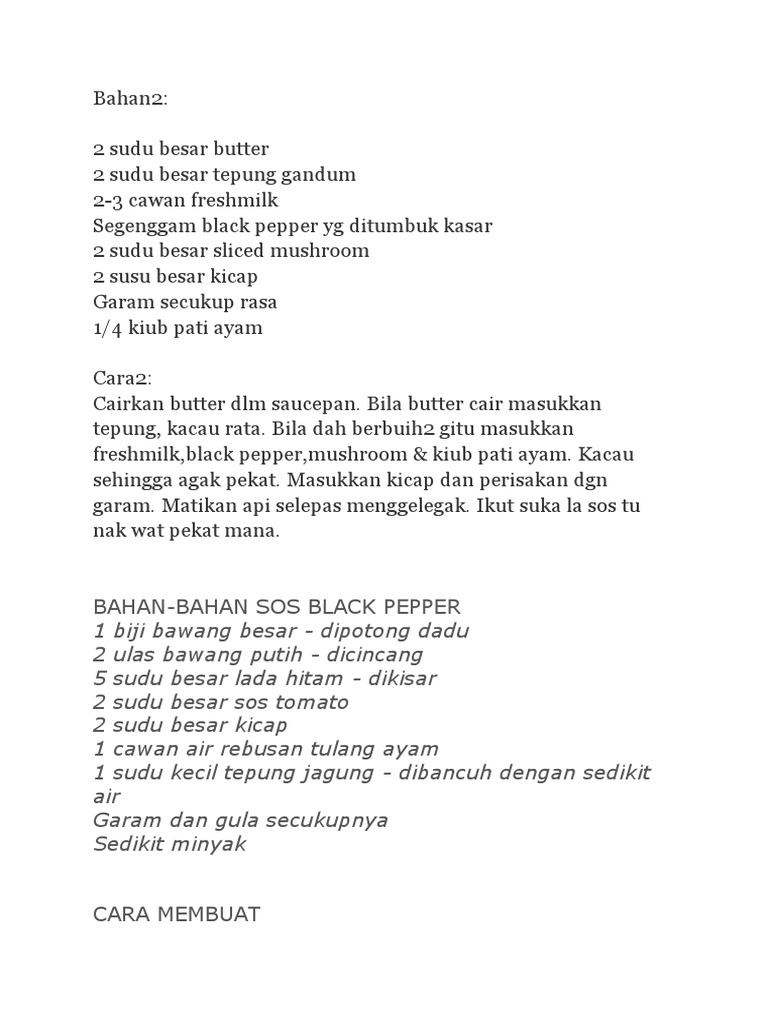 Kita share semula resepi2 dari sos black pepper anorlicious ni yer.