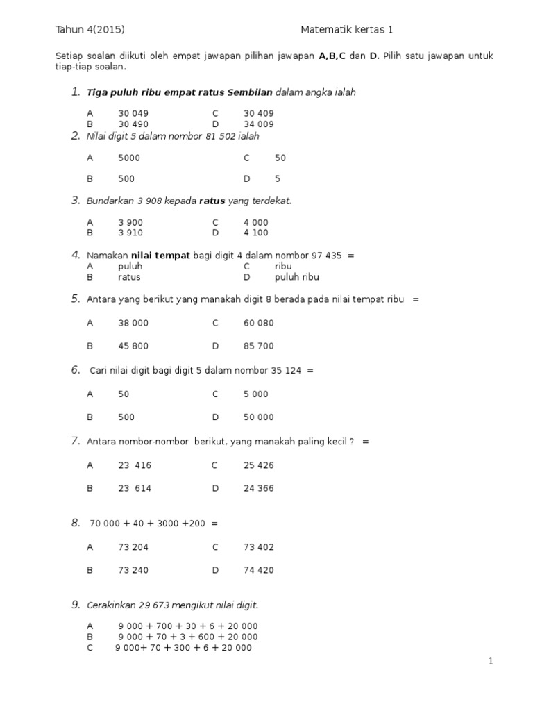 Related : Ujian Matematik Tahun 6 - Soalan Matematik Tahun 6 Ujian 1 - Indeday f / Maybe you would like to learn more about one of these?.